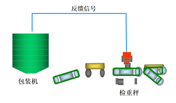 2.檢重秤與包裝機(jī)控制系統(tǒng)形成閉環(huán)控制,包裝機(jī)控制系統(tǒng)對檢重秤反饋的袋重進(jìn)行分析對比,修正下一袋的包裝重量,能有效的提高袋重準(zhǔn)確度。