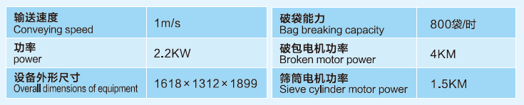 破包清理裝置是用來分離在線不合格水泥包的。上部的輸送裝置能根據(jù)檢重秤信號自動自動將不合格包分檢到下部的破包機中,破包機使用刀片將袋重不合格的水泥包進(jìn)行破毀處理,然后用回轉(zhuǎn)篩網(wǎng)將袋子碎片和水泥分離,水泥將回收到包裝系統(tǒng)進(jìn)行再次包裝。